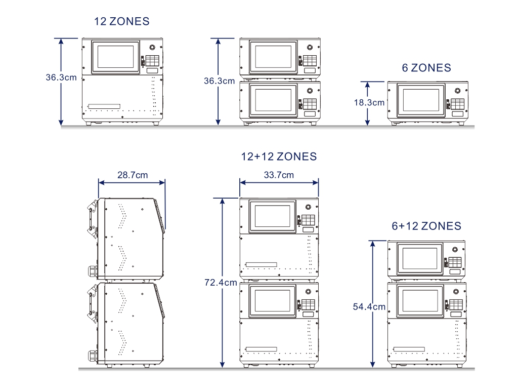 - The 7" LCD display with touch panel can display real-time temperature and other control parameters, such as mold leakage detecting, synchronous heat up and cool down, mold memory, group setup function, power balance detection and display, self diagnosis log.
