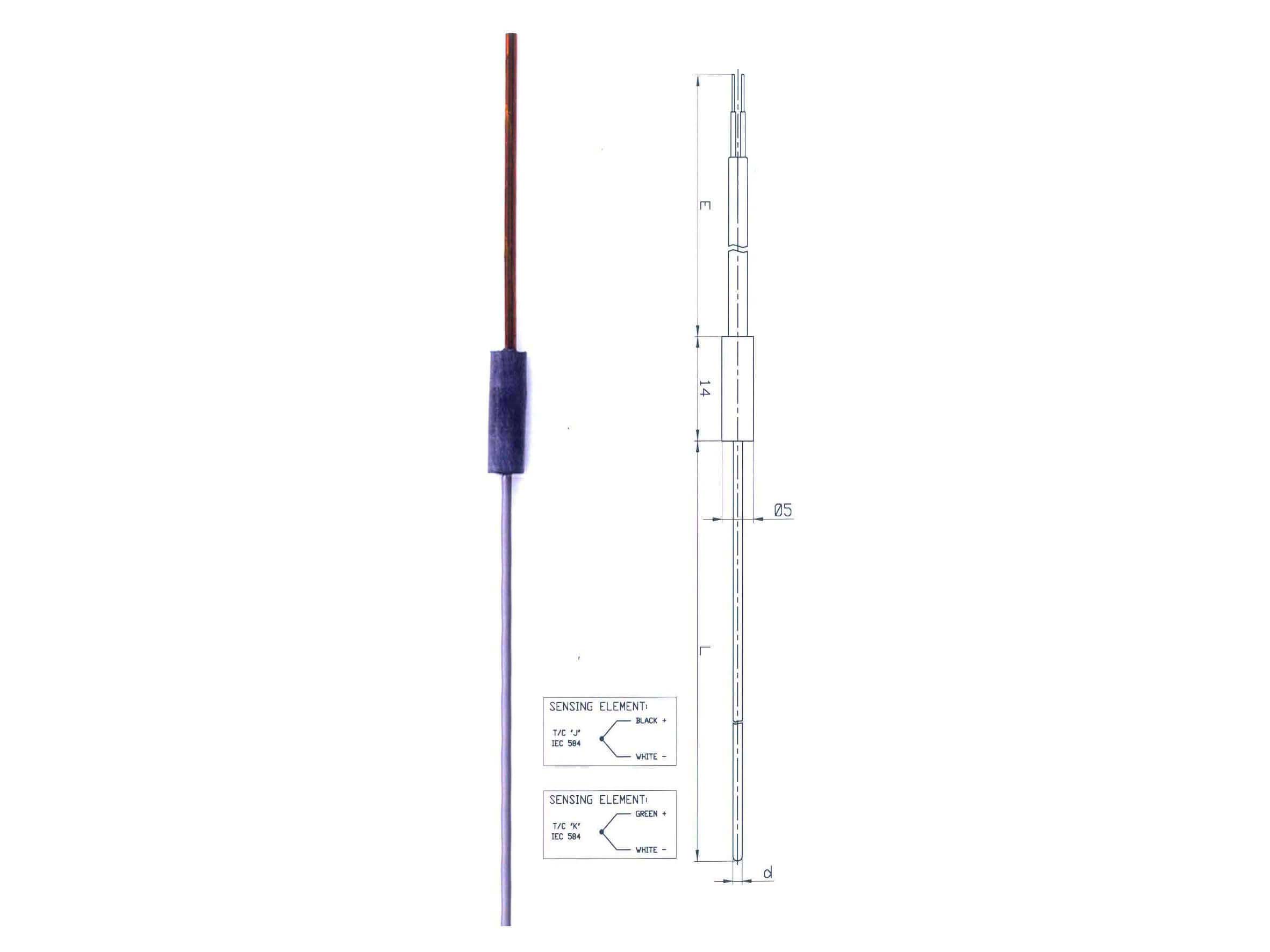 - type of thermocouple:Single element thermocouple type 'K' or 'J' according to IEC 584 class 2 (ASTM E 230)